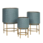 Elegant Teal Honeycomb Planter Trio with Gold Stands