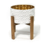 Be the first to review “Geometric White Planter with Gilded Interior and Wood Stand” Cancel reply