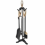 Add a touch of contemporary elegance to your fireside with this stylish 5-piece fireplace tool set. This set features a sophisticated two-tone design, pairing a durable, matte black finish with chic, polished brass (or gold-tone) accents.