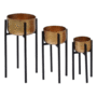 Modern Hammered Gold Bowl Planter Trio with Black Stands