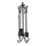Ornate 5-Piece Wrought Iron Fireplace Tool Set with Scroll Stand (Black)